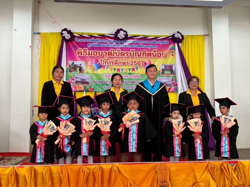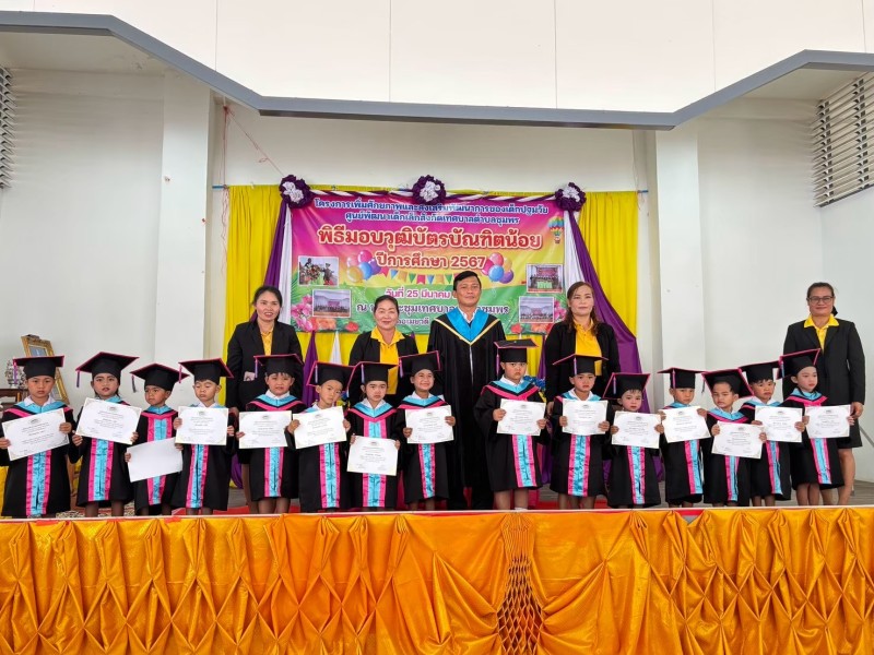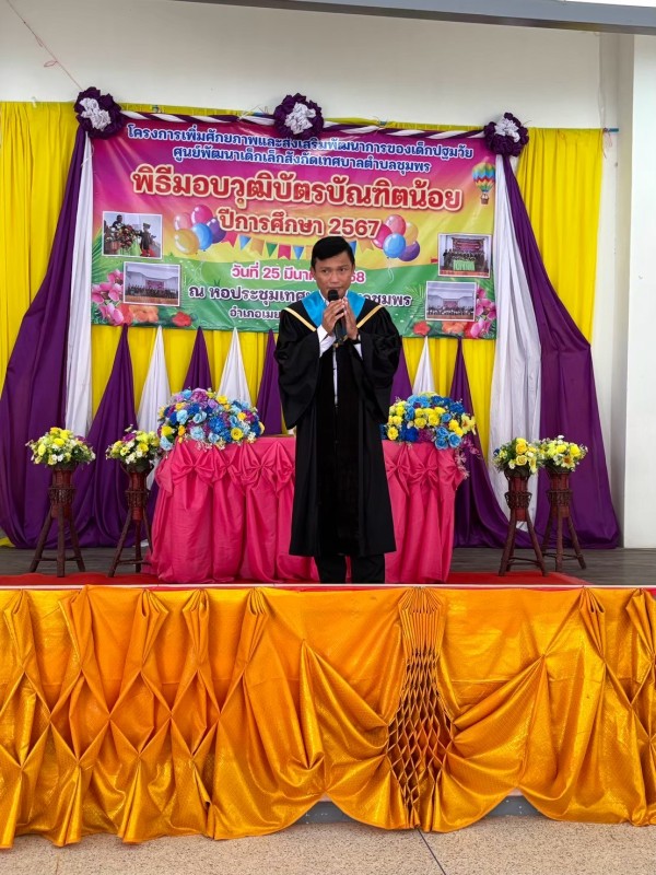 โครงการเพิ่มศักยภาพและส่งเสริมพัฒนาการของเด็กปฐมวัยศูนย์พัฒนาเด็กเล็กสังกัดเทศบาลตำบลชุมพร (พิธีมอบวุฒิบัตรบัณฑิตน้อย ปีการศึกษา 2567) วันที่ 25 มีนาคม 2568 ณ หองประชุมเทศบาลตำบลชุมพร